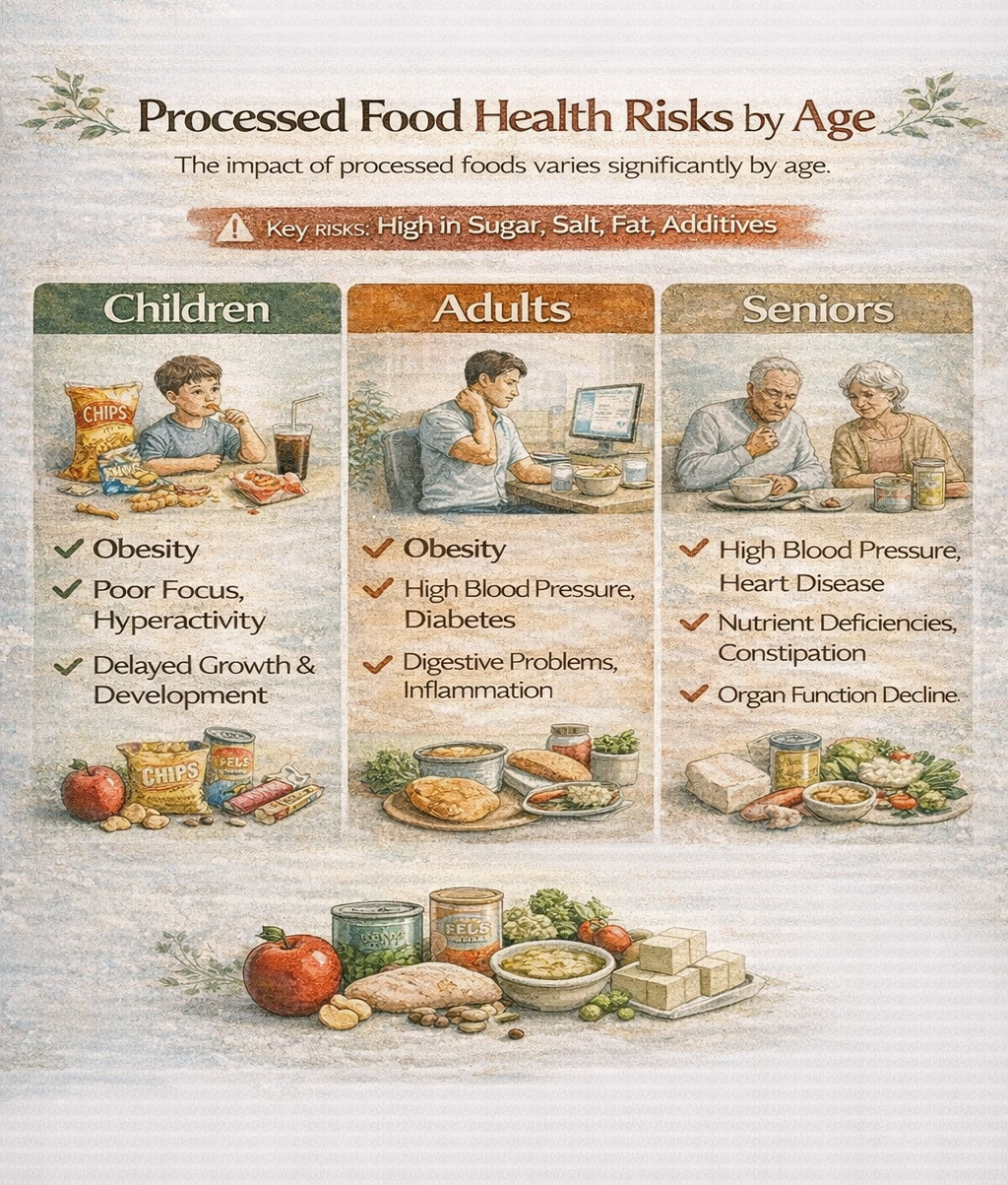 가공식품은 바쁜 현대인의 식생활에서 빠질 수 없는 요소입니다. 도시락, 즉석식품, 음료수, 과자, 냉동식품 등 대부분의 가공식품은 접근성과 편리함을 갖추고 있어 누구나 쉽게 선택하게 됩니다. 하지만 이러한 가공식품은 나이별로 건강에 미치는 영향이 상당히 다르며, 연령에 따른 섭취 기준과 주의사항을 인식하는 것이 무엇보다 중요합니다. 성장기에 있는 어린이에게는 신체와 두뇌 발달에 장애를 줄 수 있으며, 성인은 만성질환과 직결되고, 노년층은 기존 질환의 악화 및 영양 흡수 문제로 이어질 수 있습니다. 2026년 최신 건강 트렌드와 데이터를 기반으로, 본문에서는 나이대별 가공식품의 위험성과 그에 맞는 식단 관리 방법을 심층 분석해보겠습니다.