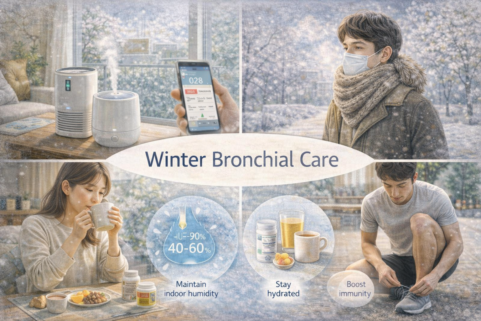 겨울철 기관지 관리는 건조한 환경 개선, 기침 원인에 대한 체계적 대응, 면역력 강화 생활 습관으로 요약할 수 있습니다.
