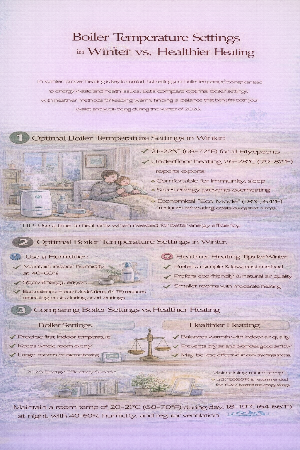 겨울철 실내 생활에서 가장 중요한 요소 중 하나는 바로 적절한 난방과 실내 온도 유지입니다. 그러나 보일러 온도를 무작정 높이는 것은 에너지 낭비뿐 아니라 건강에도 악영향을 줄 수 있습니다. 이 글에서는 효율적인 보일러 온도 설정법과 함께, 건강을 해치지 않으면서도 따뜻하게 겨울을 보내는 건강한 난방법에 대해 비교 분석합니다. 2026년 최신 생활환경 데이터를 바탕으로, 경제성과 건강을 모두 지키는 방법을 알아보세요.