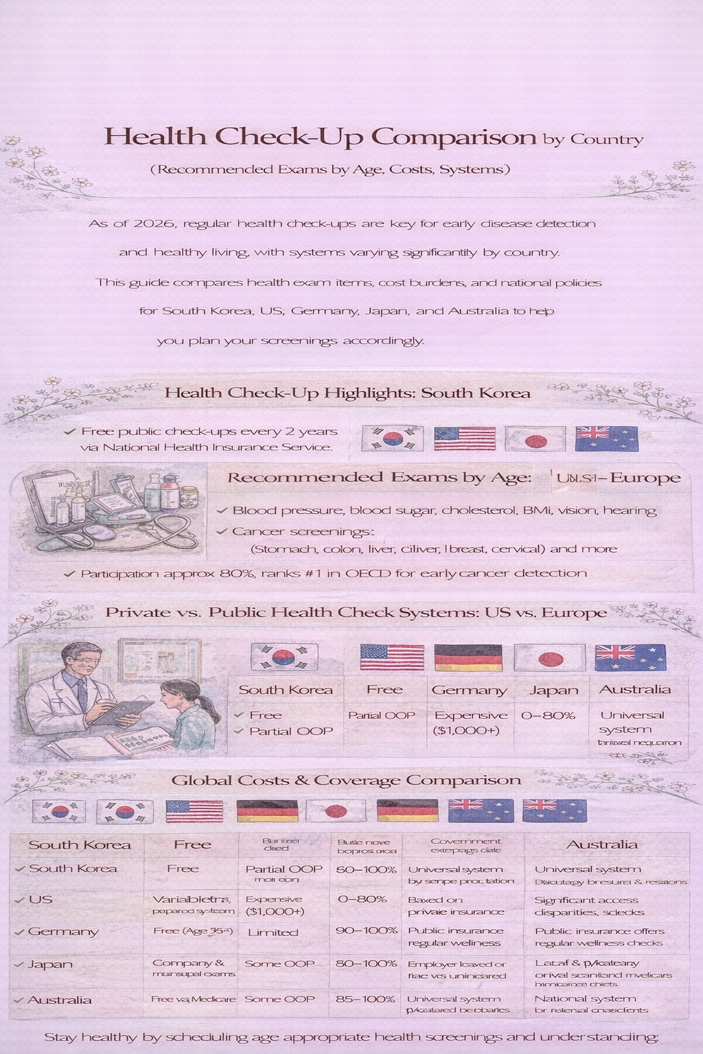 2026년 현재, 정기 건강검진은 조기 질병 발견과 건강한 삶을 위한 핵심 수단으로 각국에서 제도화되어 있습니다. 하지만 검진 항목, 대상 연령, 비용 부담, 참여율 등은 국가마다 큰 차이를 보입니다. 이 글에서는 한국을 비롯한 주요 국가들의 건강검진 시스템을 비교 분석하여, 개인이 자신의 연령과 건강 상태에 맞는 검진 전략을 세울 수 있도록 돕고자 합니다.