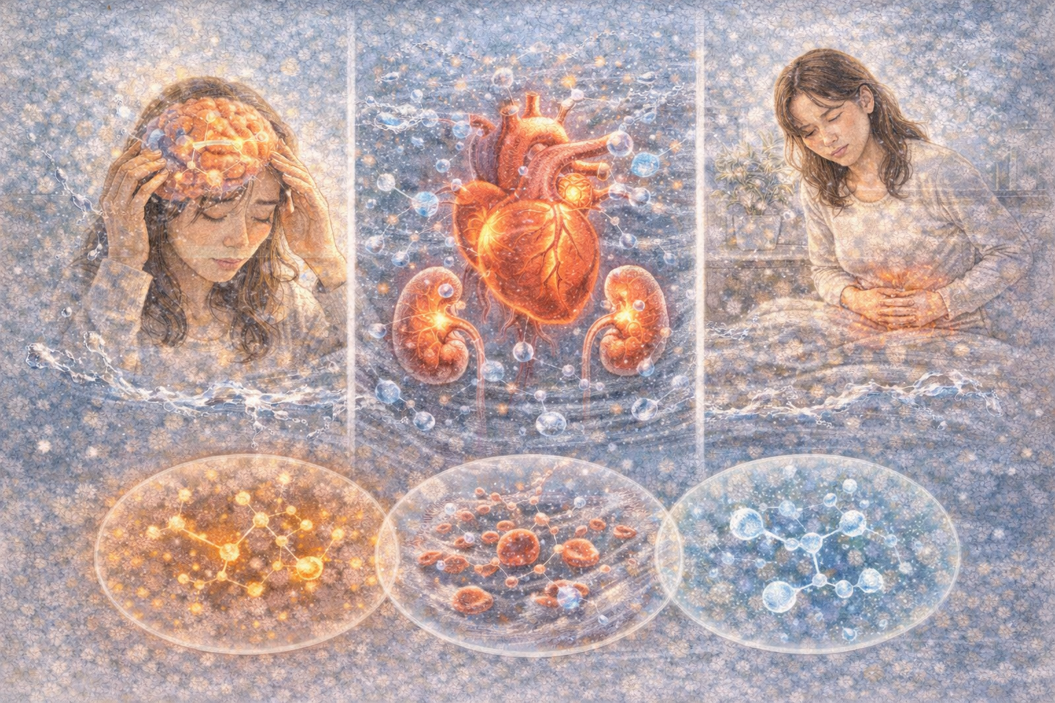 이처럼 수분조절은 전신 건강의 기본이 되며, 하루 1.5~2리터의 수분을 꾸준히, 나누어 섭취하는 것이 건강 유지에 필수적입니다.