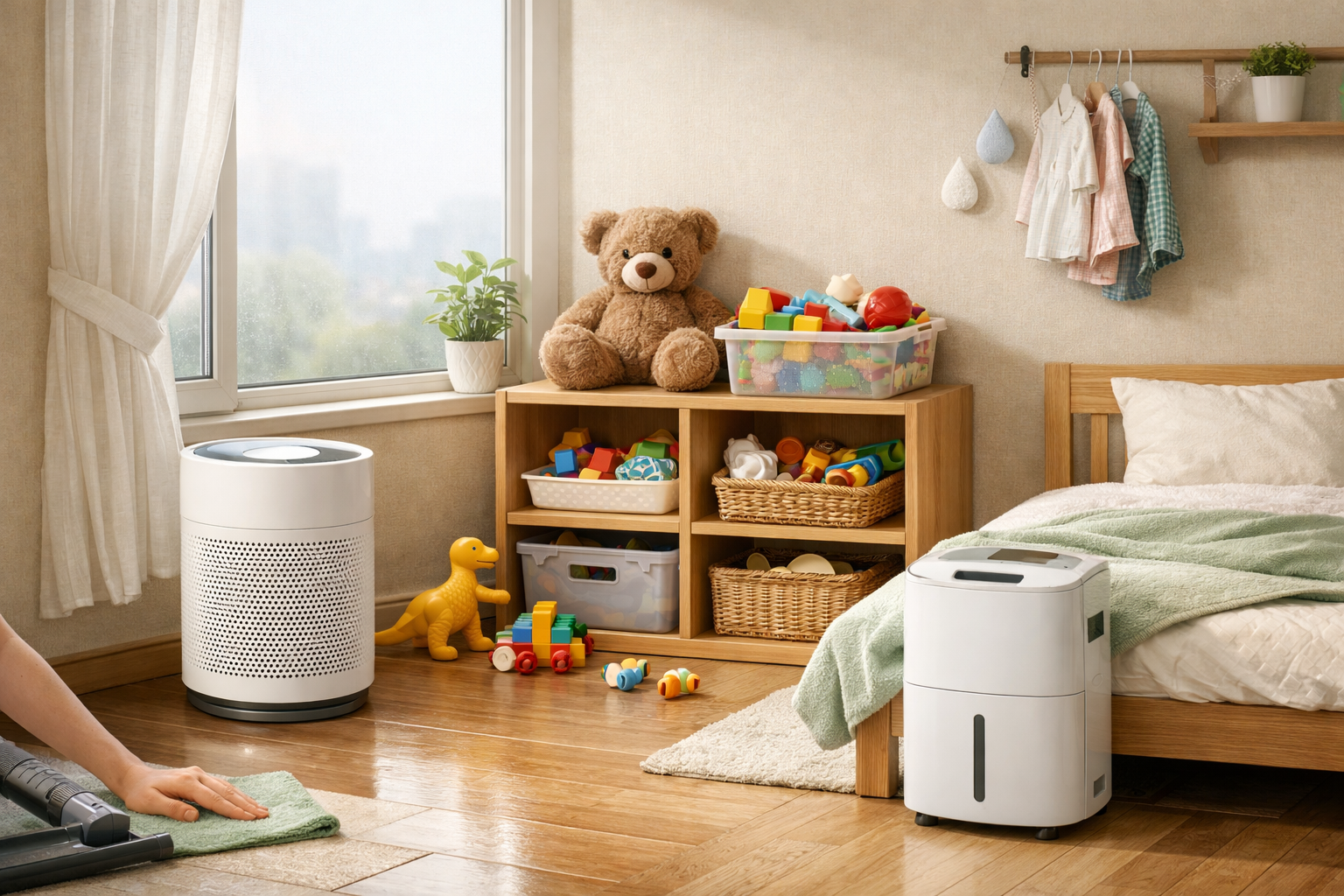 아이들은 바닥에서 활동하는 시간이 많고 손으로 물건을 만지거나 입에 가져가는 행동을 자주 하기 때문에 실내 공기와 생활 위생 관리가 매우 중요합니다. 작은 먼지나 습기 문제도 아이 건강에 영향을 줄 수 있기 때문입니다.