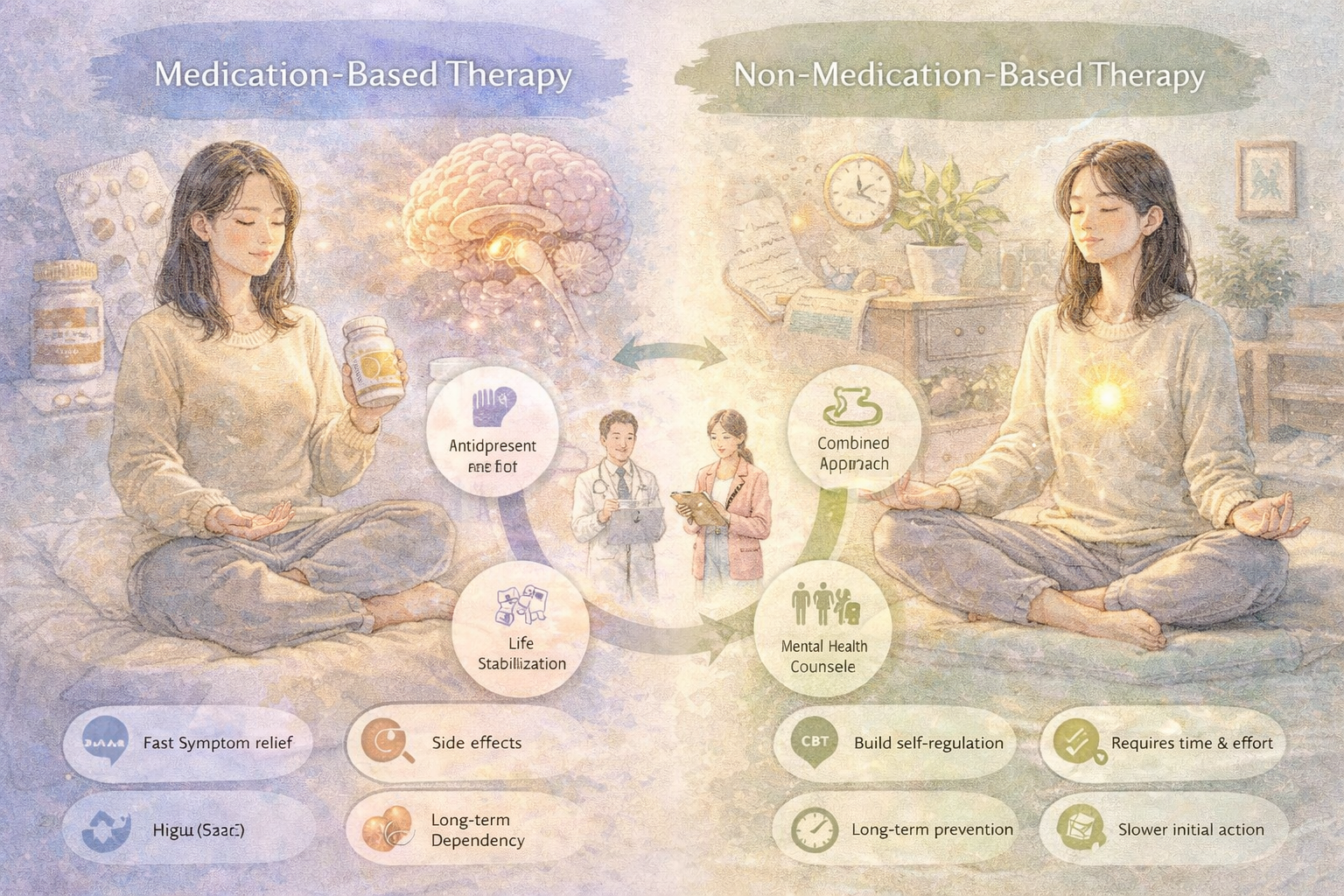 이번 글에서는 약물치료와 비약물치료의 개념, 과학적 근거, 장단점, 병행 여부, 그리고 사례 기반 실천 가이드를 통해 이 두 가지 치료 방법을 입체적으로 비교하고자 합니다.
