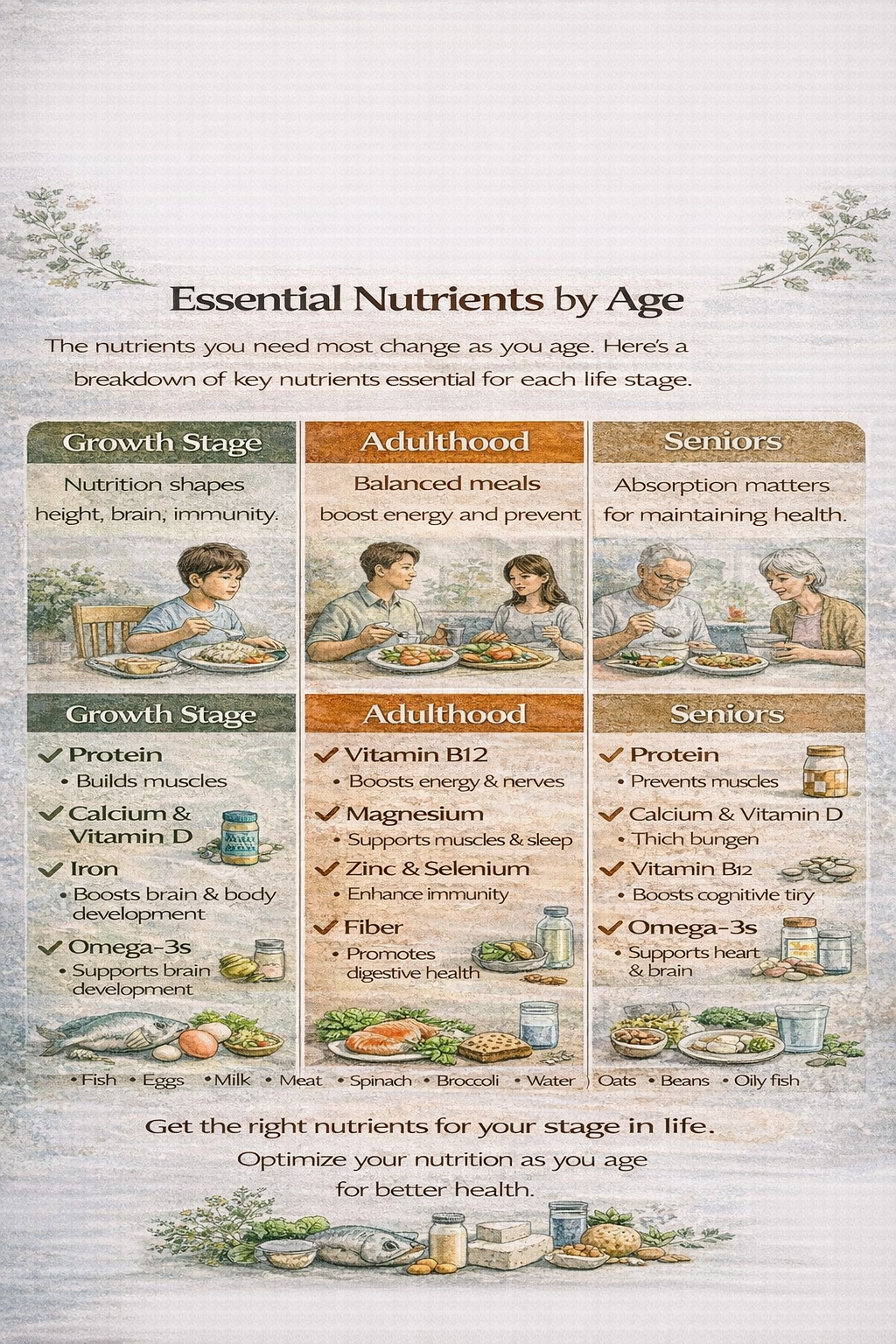 모든 영양소가 모든 사람에게 동일하게 중요한 것은 아닙니다. 나이에 따라 필요한 양, 형태, 흡수 방법까지 달라지므로, 생애주기별로 최적화된 영양 관리가 필수입니다. 무조건 보충제를 먹거나 유행하는 식단을 따르기보다는, 자신의 연령과 건강 상태를 고려한 맞춤형 섭취가 바람직합니다.