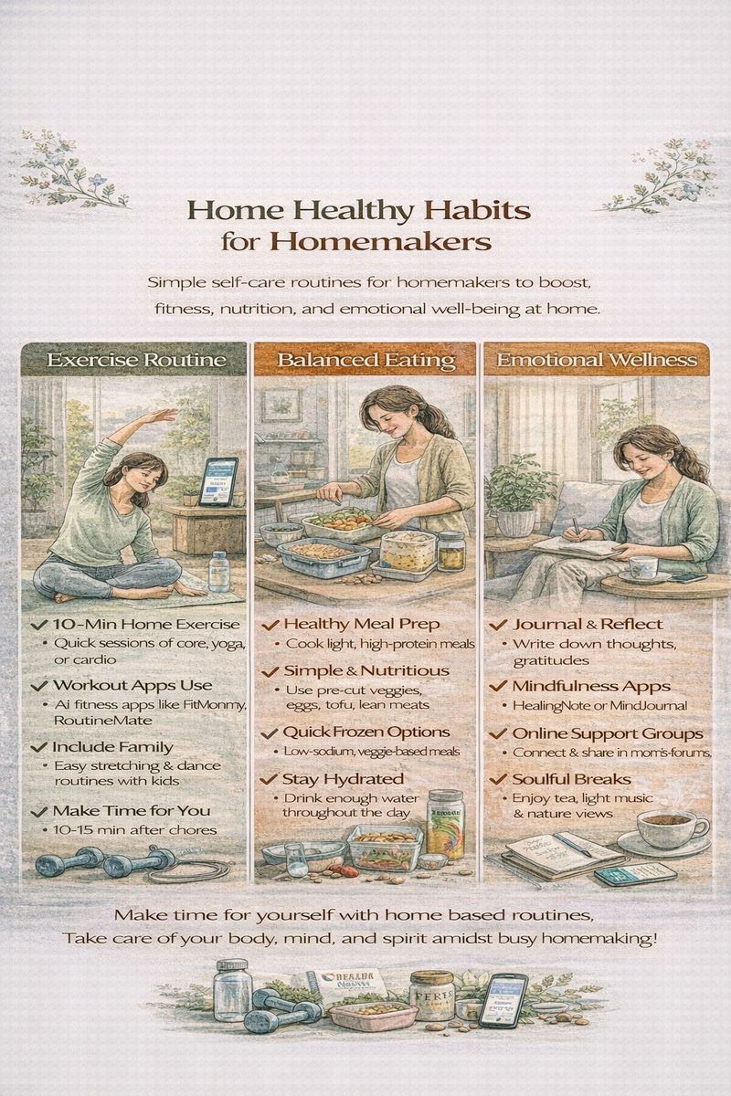 2026년 현재, 가족과 집안일을 동시에 돌보는 주부의 역할은 점점 더 복잡하고 무거워지고 있습니다. 특히 외부 활동이 줄고 가정 내 중심의 생활이 길어지면서 신체 활동 부족, 식사 불균형, 정서적 고립 문제가 주부 건강을 위협하고 있습니다. 이 글에서는 운동, 식단, 멘탈 관리라는 세 가지 핵심 요소를 중심으로, 집에서도 실천 가능한 건강 관리법을 현실적으로 소개합니다.